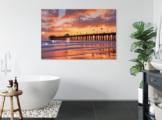 San Diego Beach Sunset at the Pier - Metal Print Wall Art
