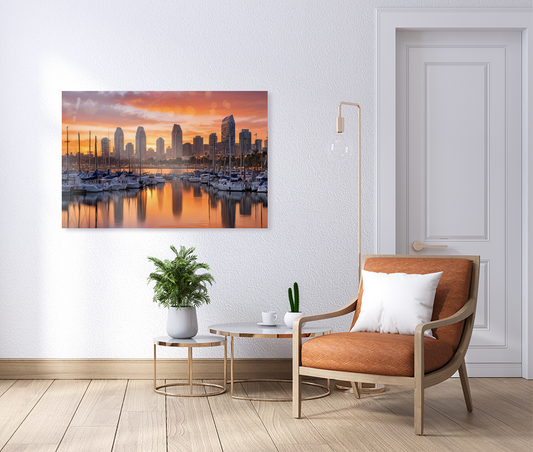 San Diego Beach Harbor Sunset - Metal Print Wall Art